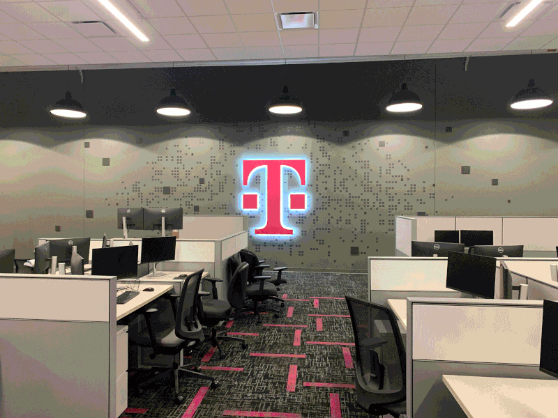 Because of their layout and client-centric messaging, T-Mobile no longer comes off as just another corporation; They instead are viewed as a brand who cares about the local community. This in-turn bolsters morale around the office and solidifies their purpose to "Love Our Customers".